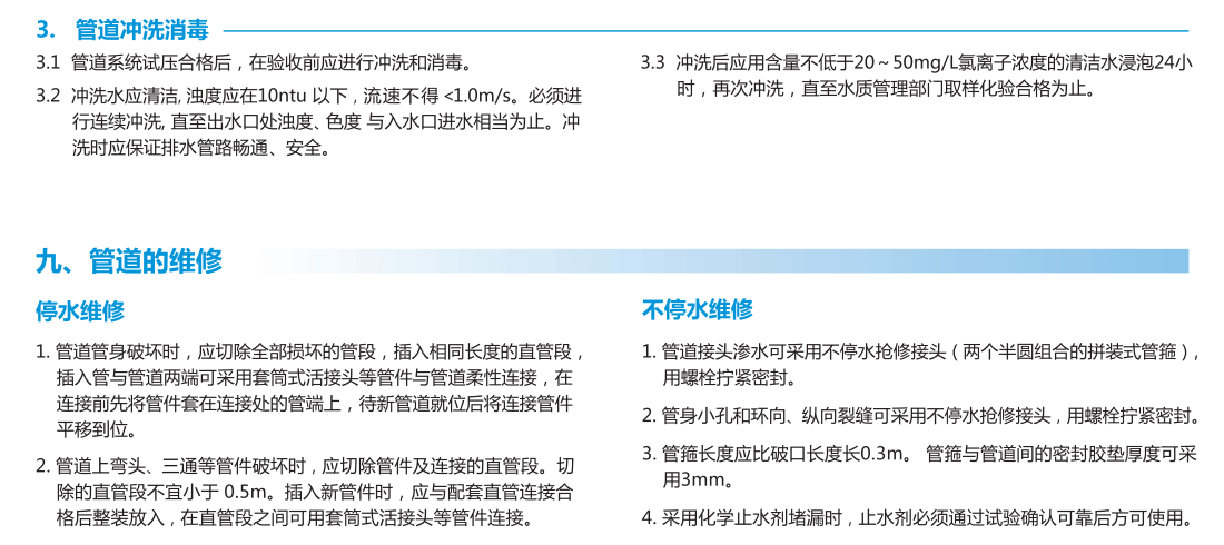 宜昌HDPE雙壁波紋管作為現(xiàn)代城市建設(shè)和基礎(chǔ)設(shè)施中的重要材料,因其優(yōu)良的耐腐蝕性、高強(qiáng)度、輕量化及良好的柔韌性,被廣泛應(yīng)用于排水、排污、農(nóng)田灌溉及通信工程等領(lǐng)域。然而,為了確保其長(zhǎng)期正常運(yùn)行,定期的維護(hù)與保養(yǎng)顯得尤為重要。 首先,定期檢查是保養(yǎng)工作的基礎(chǔ)。應(yīng)定期檢查管道表面是否有損壞、磨損或裂紋,特別是在管道連接處。同時(shí),需檢查管道周圍是否有滲漏的水,一旦發(fā)現(xiàn)滲漏,應(yīng)及時(shí)修復(fù),防止問(wèn)題擴(kuò)大。此外...